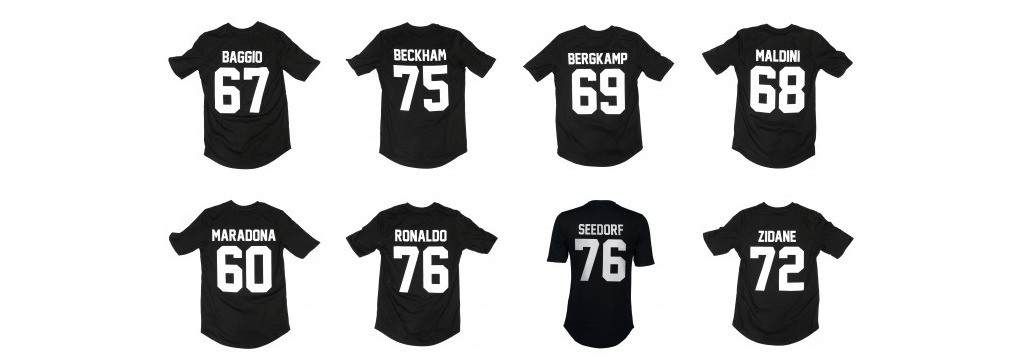 Über das Aussehen der Kollektion kann man sich also streiten. Das ist euch überlassen und hauptsächlich Geschmackssache. Eins ist allerdings sicher, die Klassiker-Serie ist definitiv ein Highlight für Fußballfans und sicherlich das Zugpferd der Marke. Wer was gegen Beckham, Zidane oder Bergkamp auf dem T-Shirt-Rücken hat, ist selber schuld. Das sind einfach Helden der Kindheit. Die Nummern sorgen zunächst etwas für Verwirrung. Anstatt Trikotnummer ist das Geburtsjahr aufgedruckt. Allerdings macht diese Tatsache das Shirt erst recht interessant.